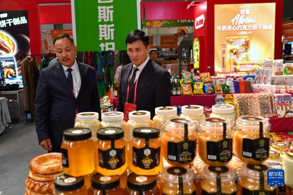 8月17日,來自吉爾吉斯斯坦的客商在2023(中國)亞歐商品貿易博覽會上查看本國産的蜂蜜。