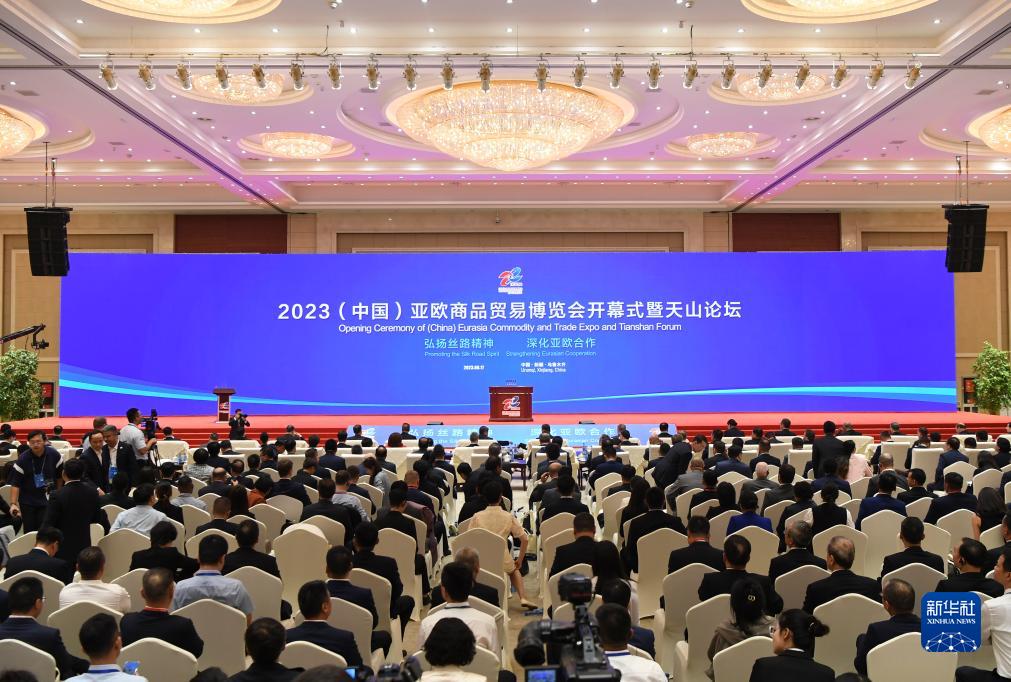 8月17日拍攝的2023(中國)亞歐商品貿易博覽會開幕式現場。