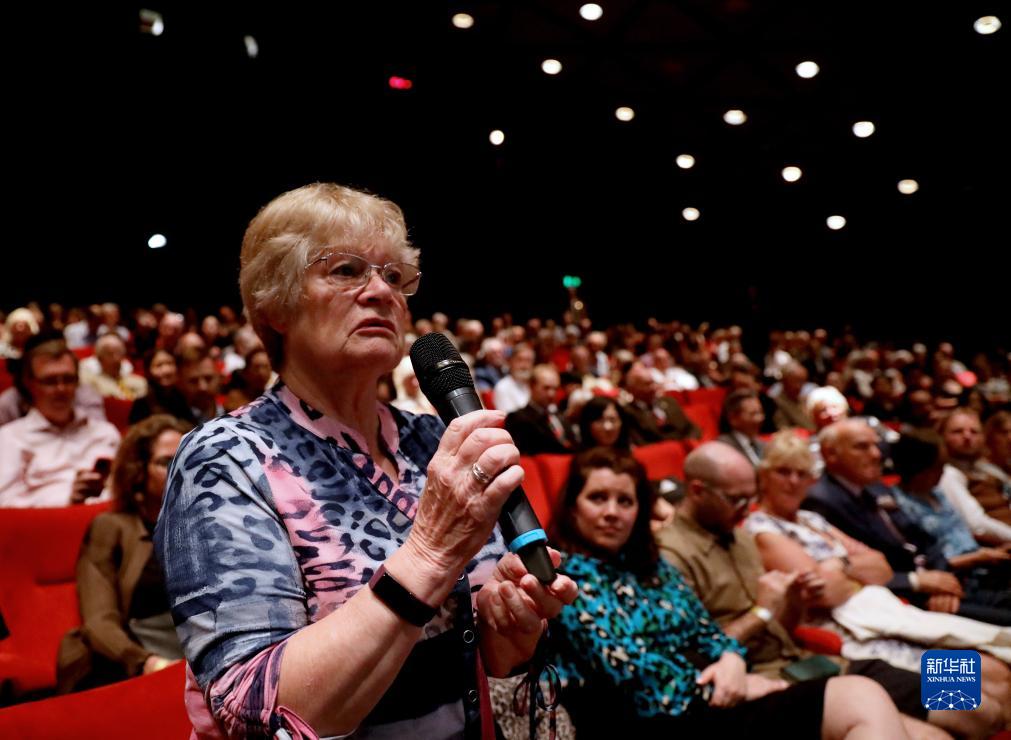 8月15日,在英國倫敦,“裏斯本丸”號倖存者丹尼斯·莫利之女丹妮絲·維尼在放映活動上與主創人員交流。