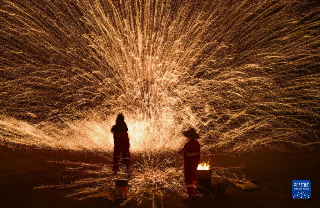 連日來,內蒙古伊金霍洛旗鄂爾多斯文化産業園在景區舉辦“華夏鐵魂”主題鐵花秀活動,民間藝人將燒紅的鐵水在半空中散開,迸濺形成萬千火花,構成壯麗的圖景,成為當地夜經濟的亮點,吸引眾多游人前來觀賞。活動將持續到8月27日。