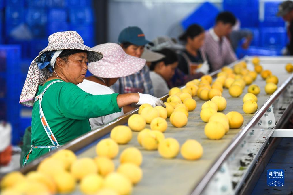 初秋時節,貴州省黔南布依族苗族自治州貴定縣德新鎮新鋪村種植的黃桃迎來收穫季節,村民忙着採摘、分揀、包裝,供應市場。近年來,貴定縣以“公司+合作社+農戶”模式,打造黃桃種植基地,通過産業增收分紅、基地務工薪酬、土地流轉支付等渠道助農增收。