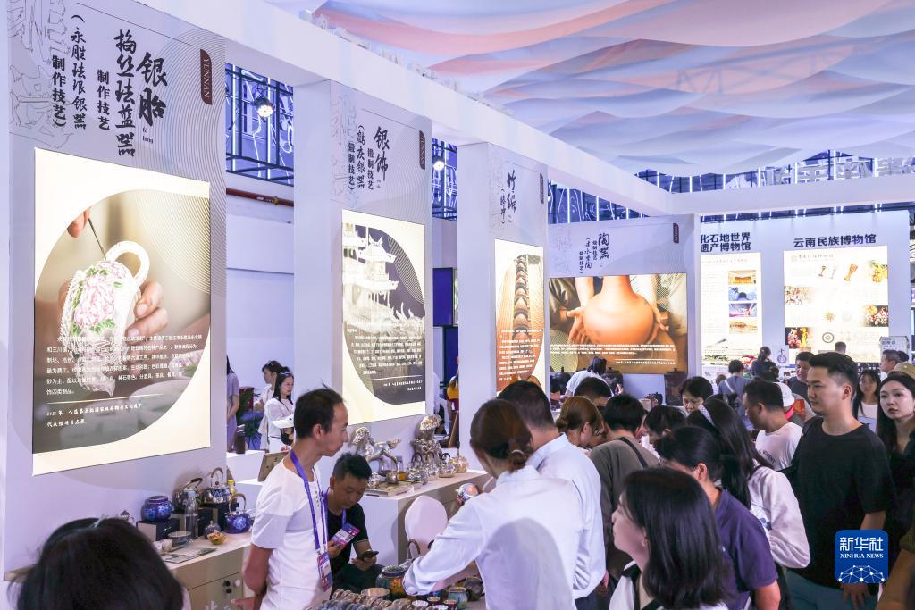 8月16日,第七屆中國—南亞博覽會在雲南昆明開幕。在南博會的雲南非遺伴手禮展區,皮影、銀器、陶器、木雕、竹編等特色非遺文化産品吸引了參觀者的關注。