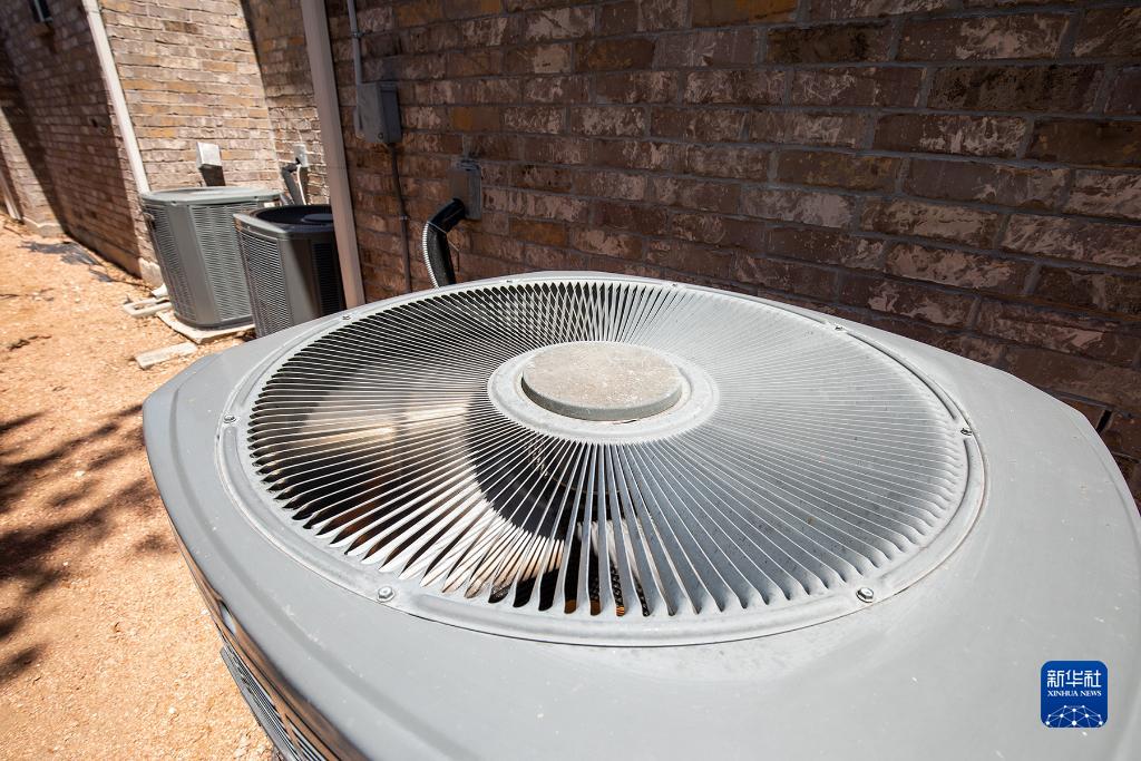 這是8月17日在美國得克薩斯州弗裏斯科市拍攝的三台高速運轉的空調。