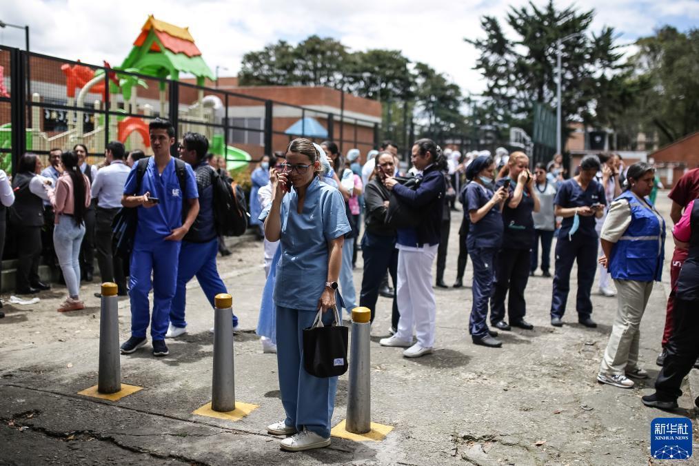 8月17日,在哥倫比亞首都波哥大,人們在地震發生後的街頭避難。