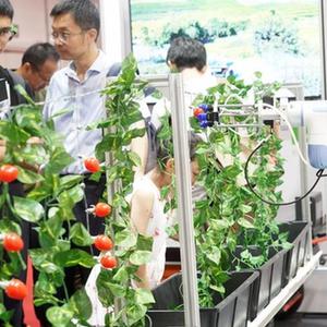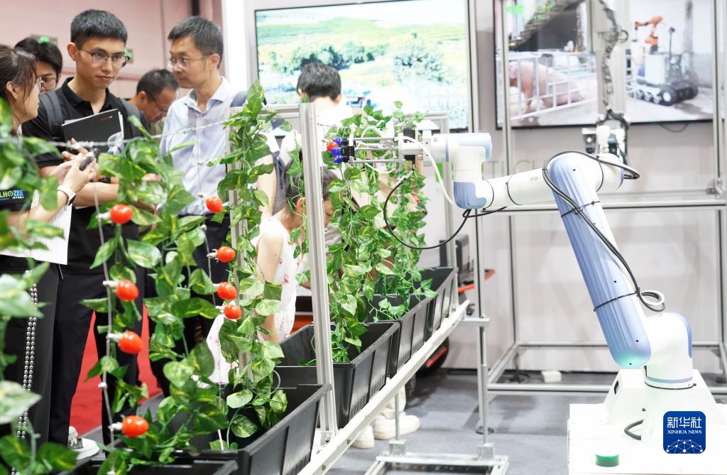這是在2023世界機器人大會現場拍攝的智能採摘機器人(8月17日攝)。