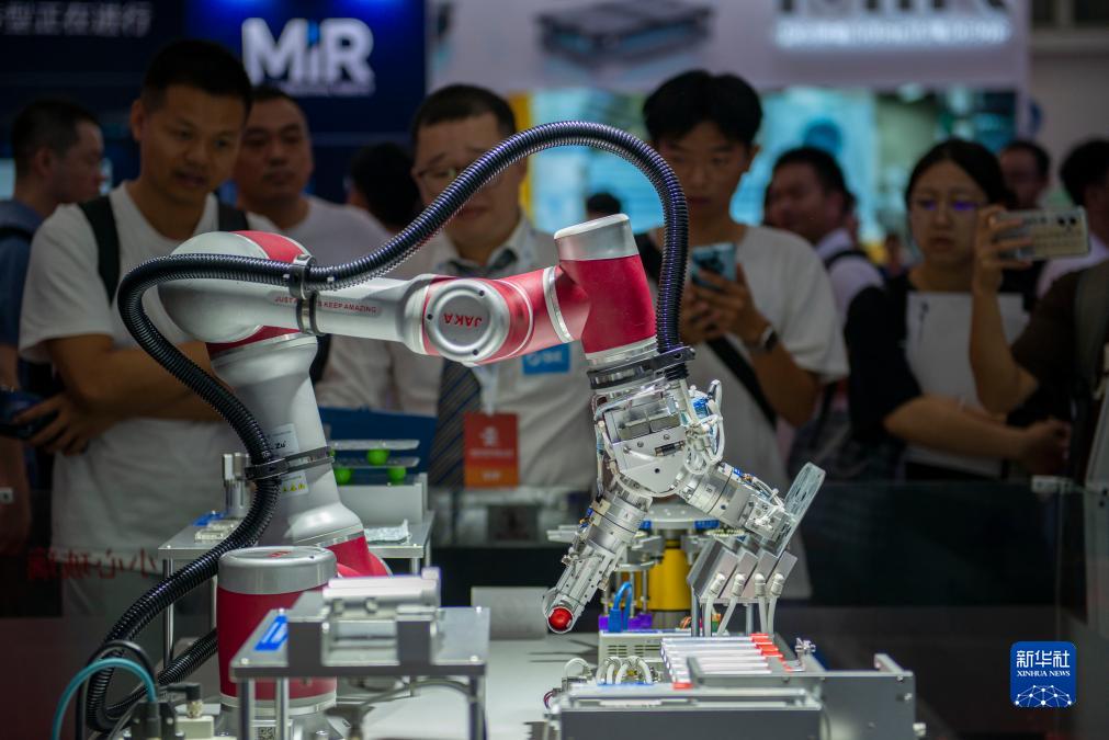 這是8月17日在2023世界機器人大會現場拍攝的一款拾放抓手演示裝置。
