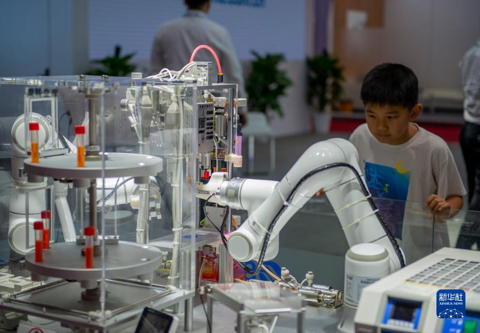 這是8月17日在2023世界機器人大會現場拍攝的智能灌液演示裝置。