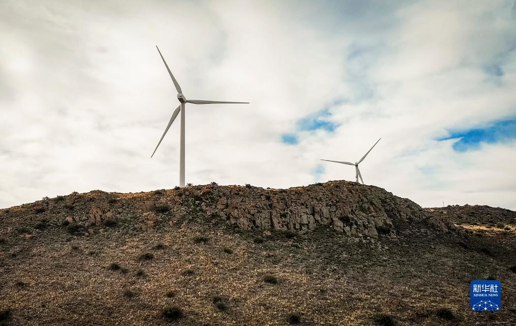 這是2023年7月25日在南非北開普省德阿鎮拍攝的德阿風電項目風機。