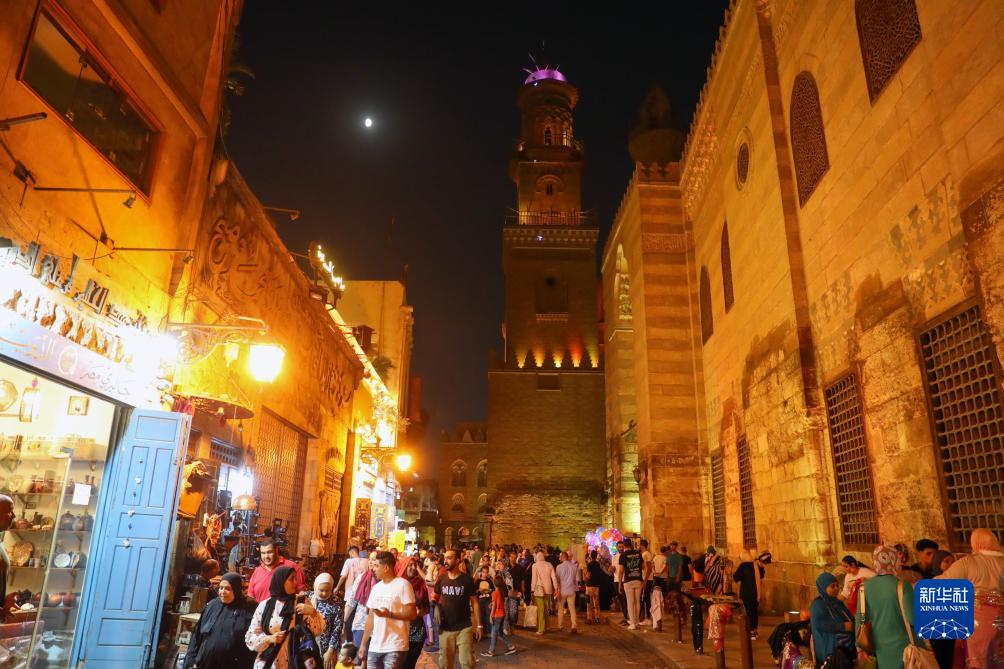 這是埃及開羅哈裏裏市場夜市一角(7月28日攝)。