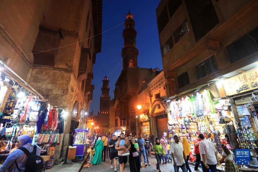 這是埃及開羅哈裏裏市場夜市一角(8月4日攝)。