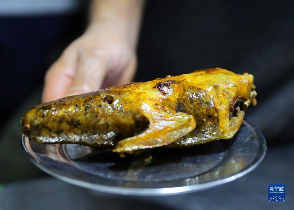 這是埃及開羅哈裏裏市場夜市的一家店舖售賣的烤鴿子(7月28日攝)。