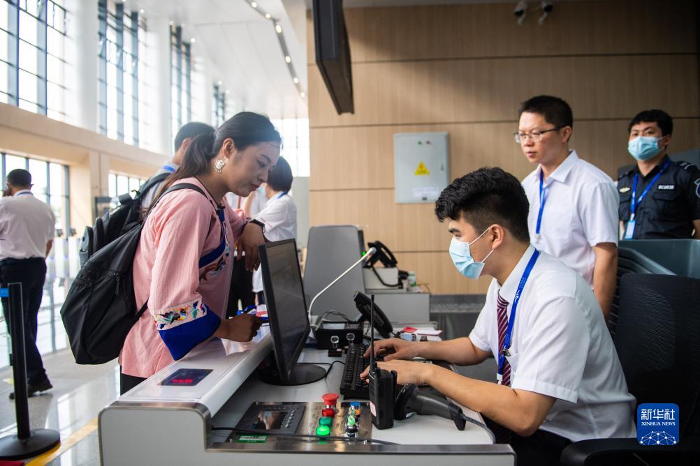 8月18日,旅客在湖南湘西邊城機場辦理值機手續。