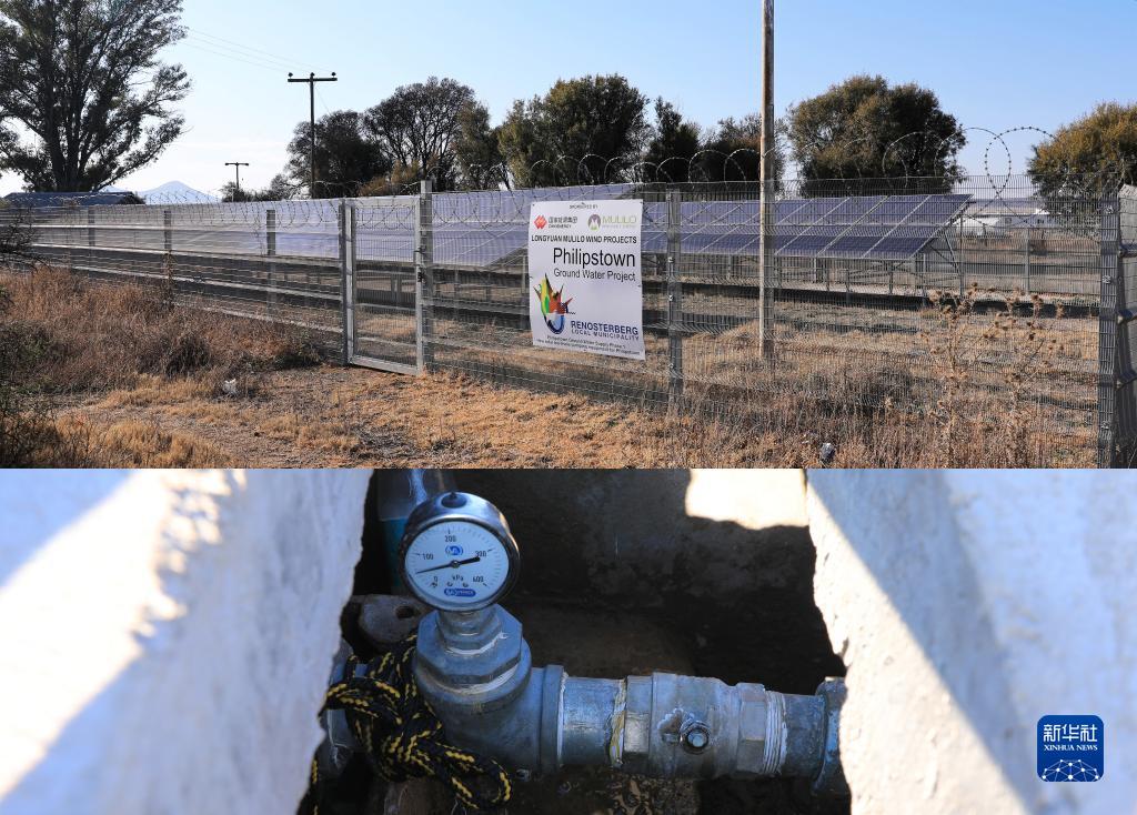 這是8月11日在南非北開普省德阿鎮拍攝的由龍源南非公司修建的一個地下水引水項目(拼版照片)。