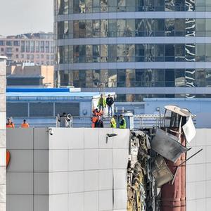 這是8月18日在俄羅斯莫斯科拍攝的受損建築。