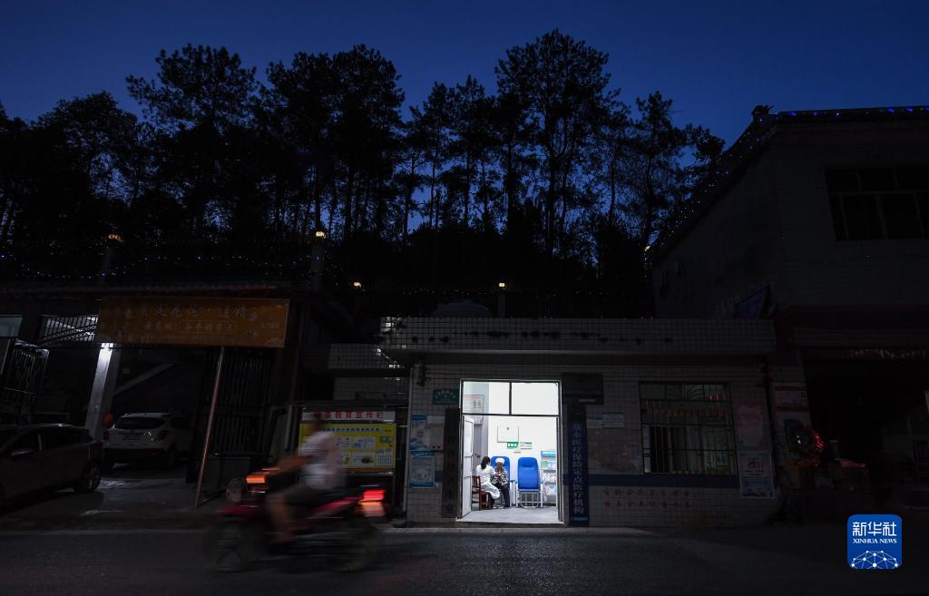 8月16日晚,羅海香在村衞生室裏給村民做檢查。