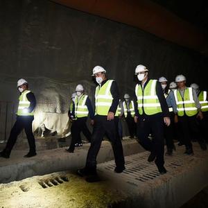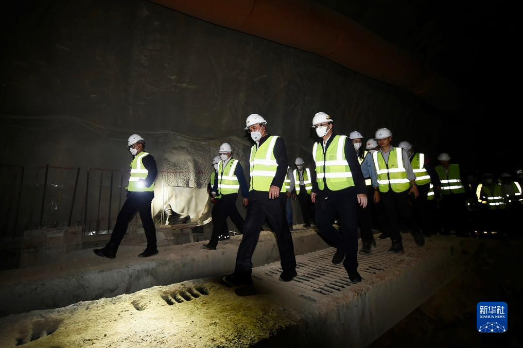 8月17日,泰國總理巴育(中)在沙拉武裏府視察中泰鐵路施工段。