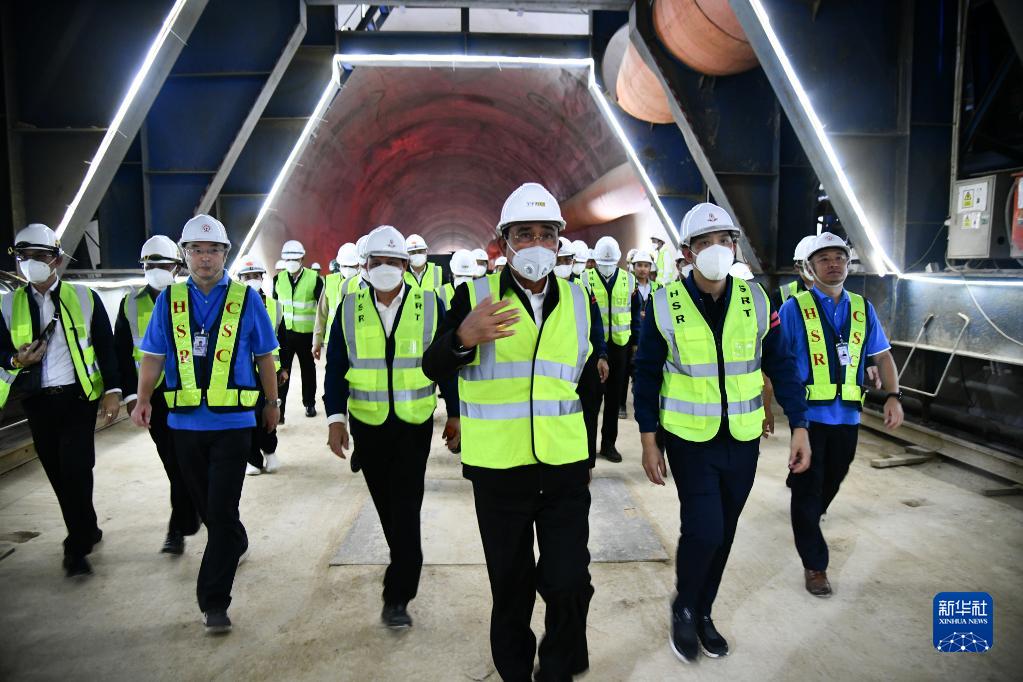 8月17日,泰國總理巴育(前)在沙拉武裏府視察中泰鐵路施工段。