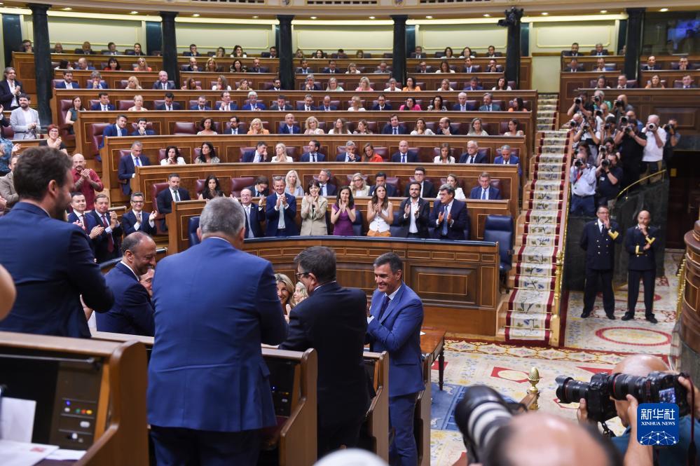 8月17日,西班牙代理首相佩德羅·桑切斯(中)在位於馬德里的議會進行投票。