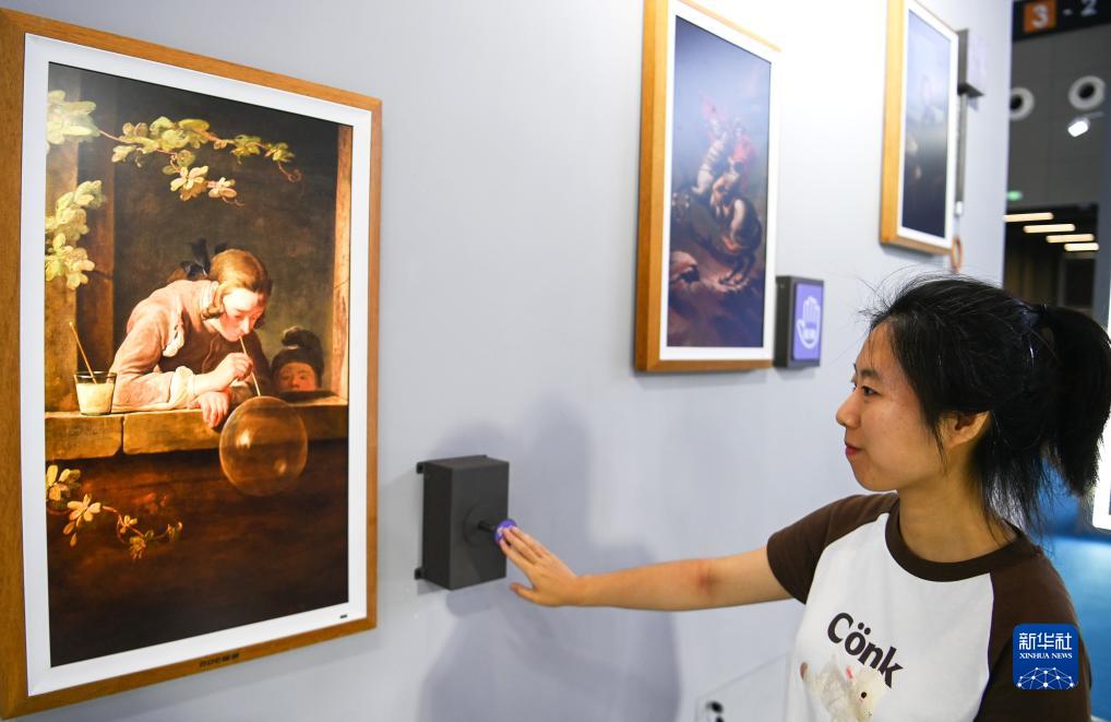 8月18日,參觀者在數字文化館體驗與名畫互動。