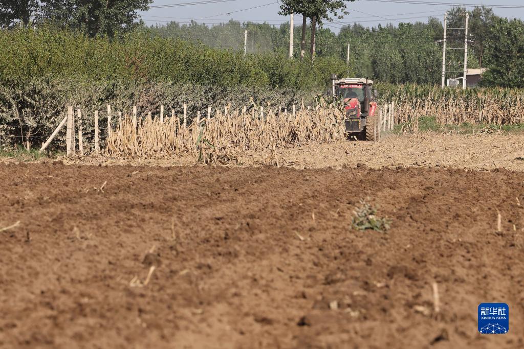 8月18日,農業機械在涿州市豆莊鎮白馬莊村粉碎秸稈。