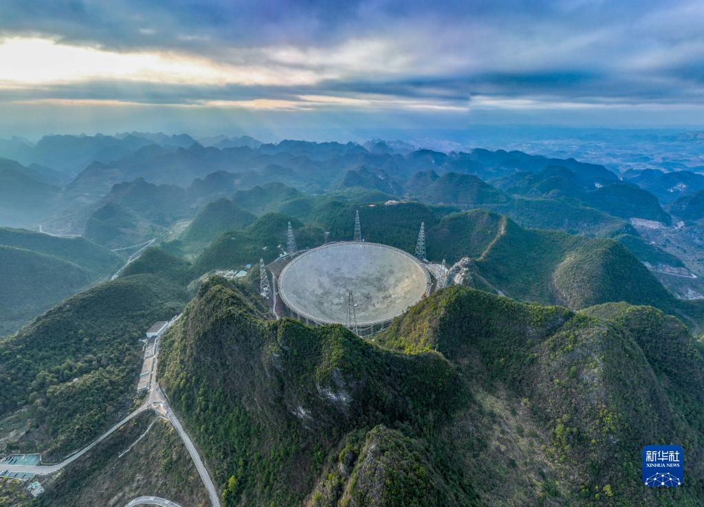這是2月13日拍攝的“中國天眼”全景(無人機照片,維護保養期間拍攝)。