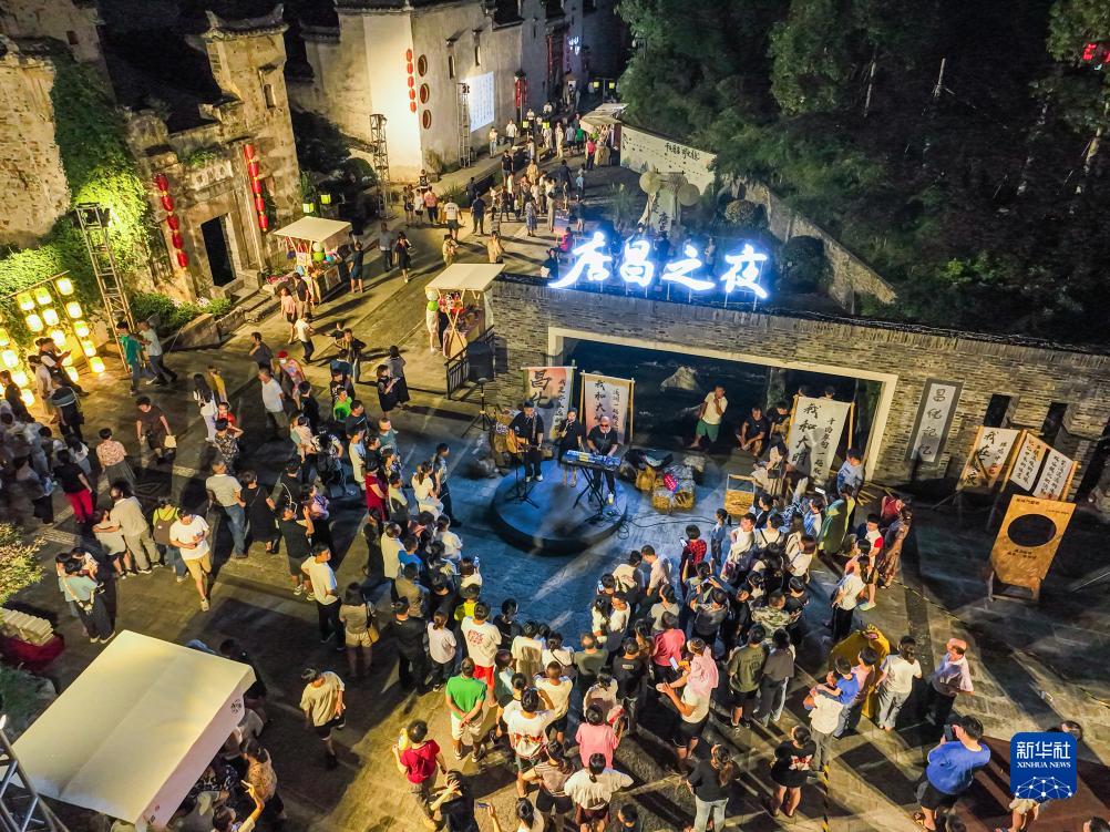 8月18日,在杭州市臨安區昌化鎮,“唐昌之夜”主題文化節正在舉行,吸引眾多游客游玩(無人機照片)。