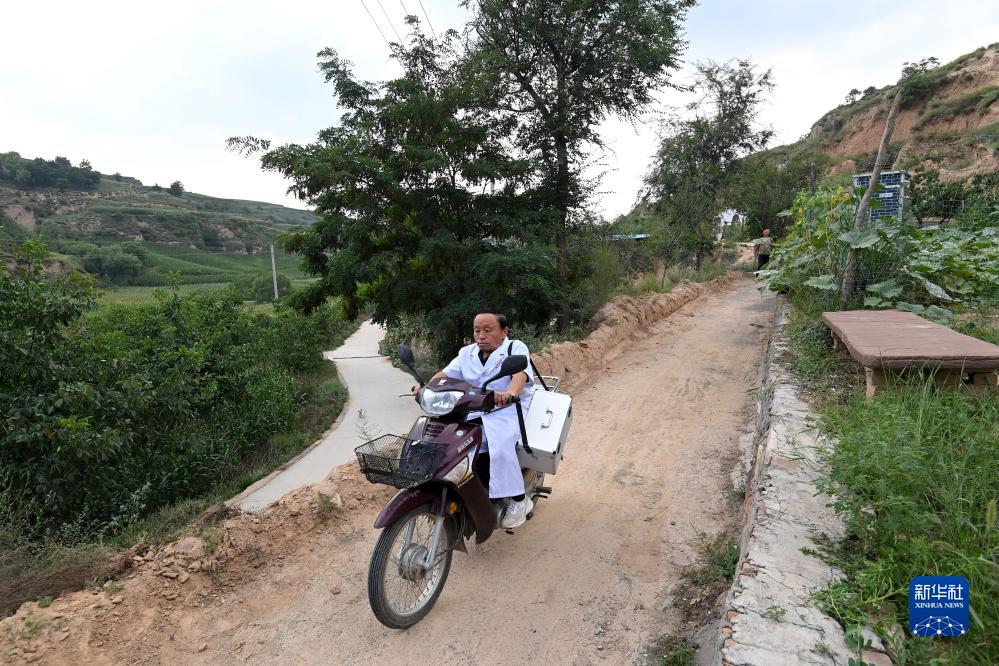 村醫楊興榮騎着摩托車前往王家溝村出診(8月15日攝)。