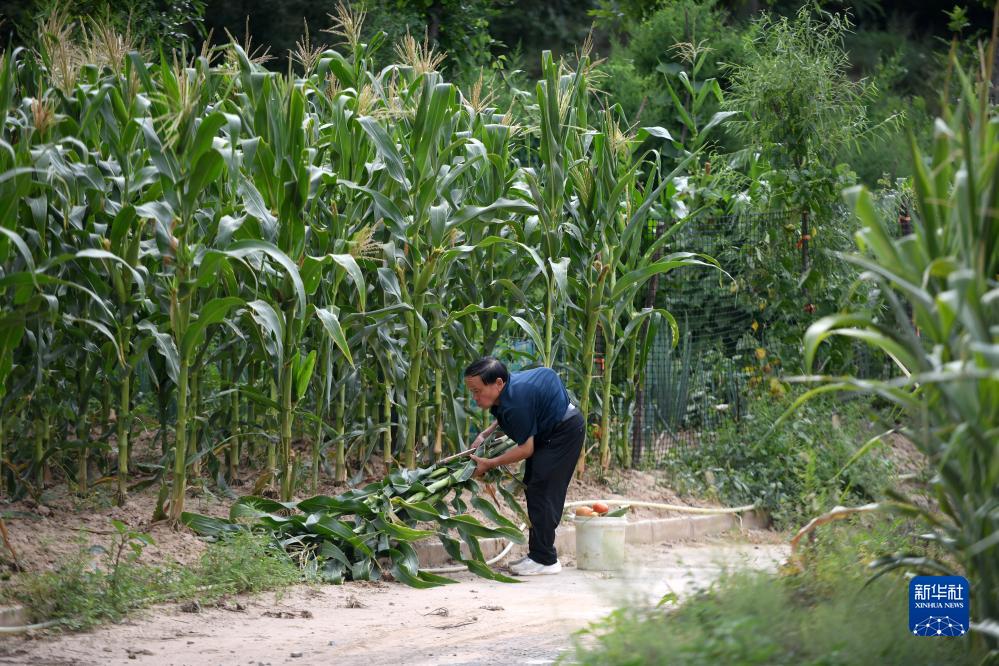 在石樓縣龍交鄉王家溝村,楊興榮在地裏幹活(8月15日攝)。