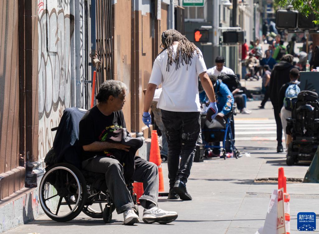 這是8月18日在美國加州舊金山市區的街道上拍攝的無家可歸者。
