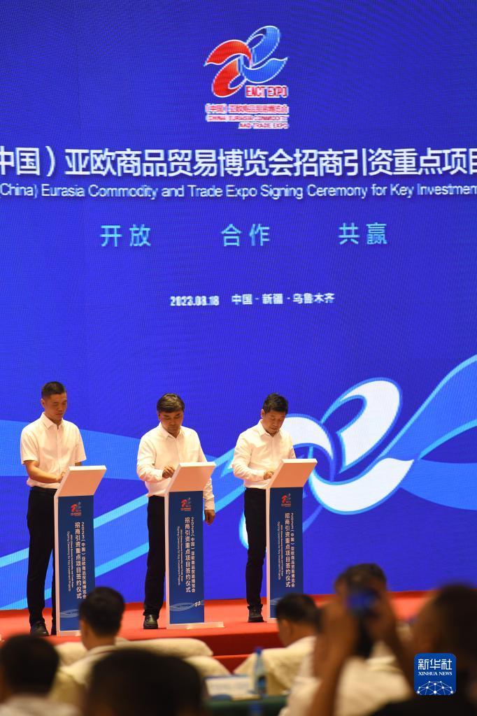 8月18日下午,2023(中國)亞歐商品貿易博覽會舉行招商引資重點項目簽約儀式。本屆商博會徵集簽約項目273個,簽約總額4932.12億元,其中,一期計劃投資1470億元,涉及新能源新材料、有色金屬、煤化工、紡織服裝、裝備製造、商貿物流、文化旅游等多個領域。