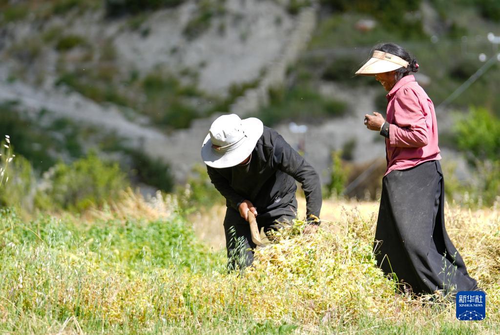 目前,西藏各地進入秋收時節。西藏昌都市邊壩縣的農民抓緊收割青稞和牧草,確保顆粒歸倉。