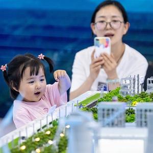 8月19日,在第七屆中國—南亞博覽會國家電投展區,家長帶着孩子參觀展覽。