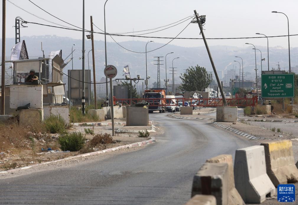 8月19日,在約旦河西岸城市納布盧斯以南的胡瓦拉鎮,以色列士兵在襲擊事件現場附近的一個檢查站執勤。