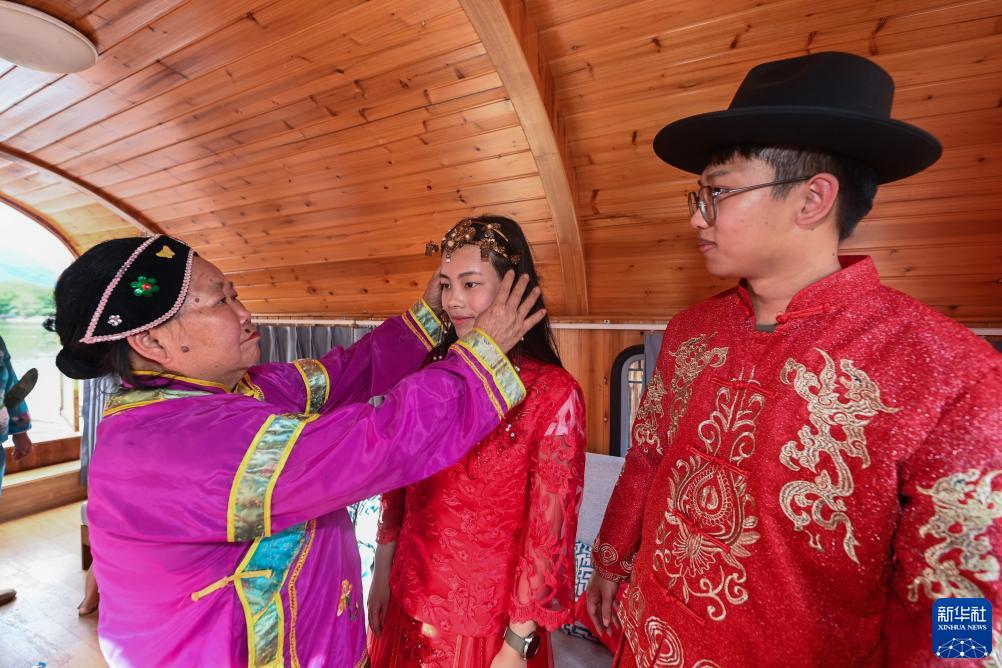 8月19日,青年情侶在三都鎮三都漁村體驗水上婚禮。