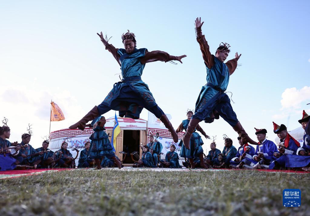 8月18日,在蒙古國泰吉山谷,演員在文化節上表演文藝節目。
