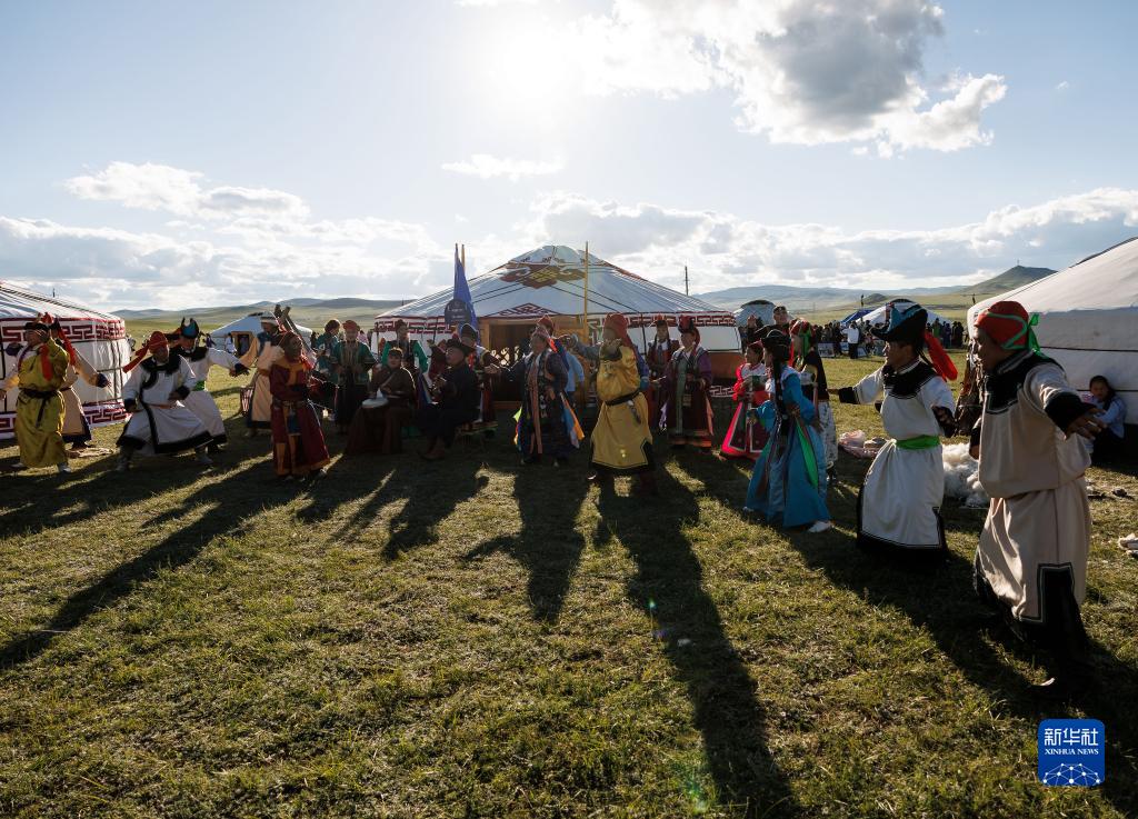 8月18日,在蒙古國泰吉山谷,演員在文化節上表演文藝節目。
