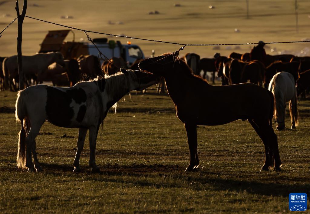 散去了白天的喧囂,距離蒙古國首都烏蘭巴托40多公里的泰吉山谷又恢復了往日的寧靜,夕陽給山谷和牧場披上了金色的盛裝。參加2023年度“游牧民族”世界文化節的人們,有的選擇在此宿營,等待次日繼續參加文化節的各種活動,有的選擇駕車返回烏蘭巴托或附近的牧點。牧人們將放牧的馬匹收攏並帶回家中,不知疲倦的孩子們繼續在夕陽中嬉戲打鬧。