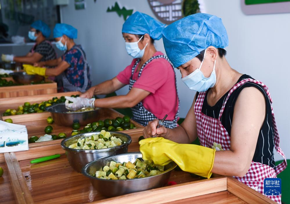 8月20日,在浙江省建德市三都鎮松口村的小青柑共富工坊,工人忙着開果、挖果。