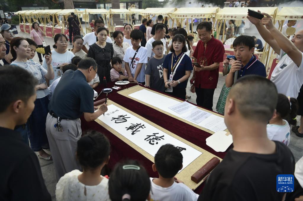 暑期以來,位於河南省開封市的中國翰園碑林景區利用周末舉辦“書畫肆集”特色文化活動,邀請書畫家現場揮毫潑墨,獨特的文化大餐吸引市民和游客前來駐足觀賞、游園休閒。