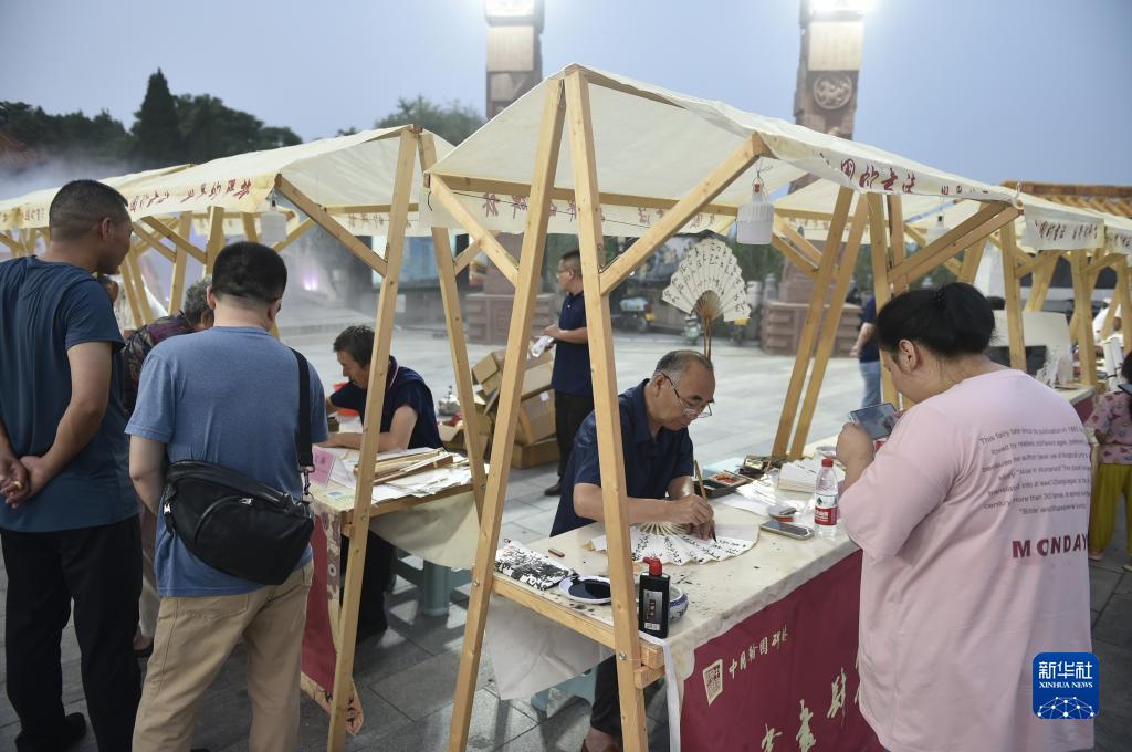 暑期以來,位於河南省開封市的中國翰園碑林景區利用周末舉辦“書畫肆集”特色文化活動,邀請書畫家現場揮毫潑墨,獨特的文化大餐吸引市民和游客前來駐足觀賞、游園休閒。
