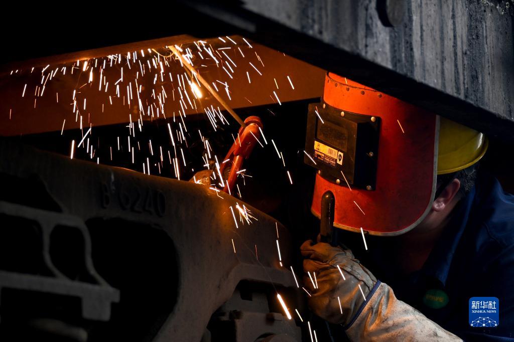 正值暑運,中國鐵路上海局集團有限公司杭州北車輛段合肥運用車間臨修班組的熔接工們堅守崗位,忙着對列車車體的破損及變形部位進行焊接維修,保障列車的安全開行。