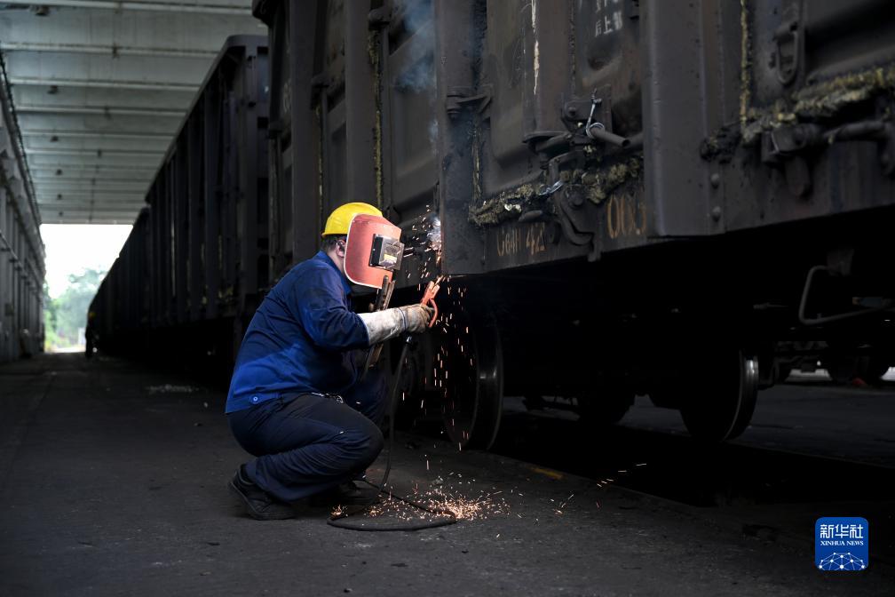 正值暑運,中國鐵路上海局集團有限公司杭州北車輛段合肥運用車間臨修班組的熔接工們堅守崗位,忙着對列車車體的破損及變形部位進行焊接維修,保障列車的安全開行。