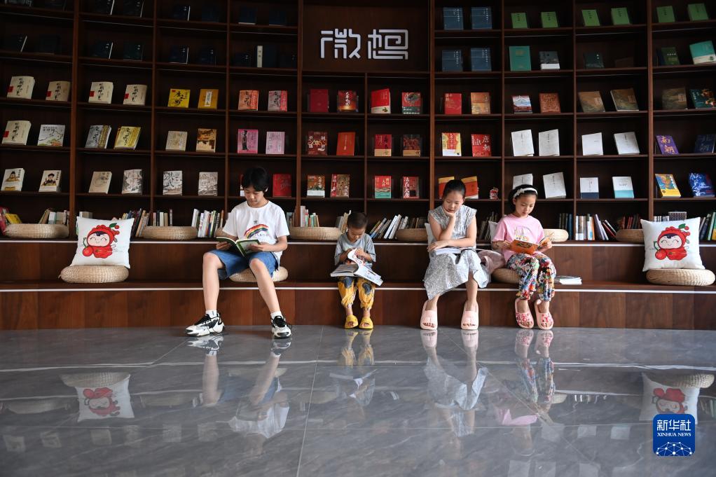 8月20日,小朋友在余姚市四明山鎮“唐詩書屋”閱讀書籍。