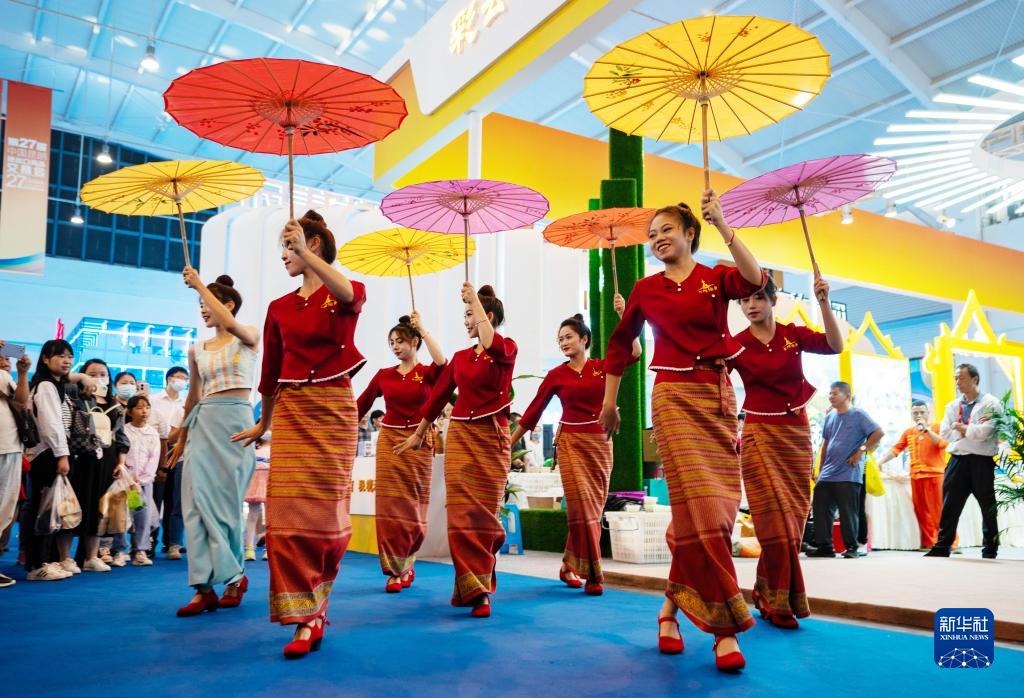 8月20日,演員在第七屆中國—南亞博覽會上表演傣族舞蹈。