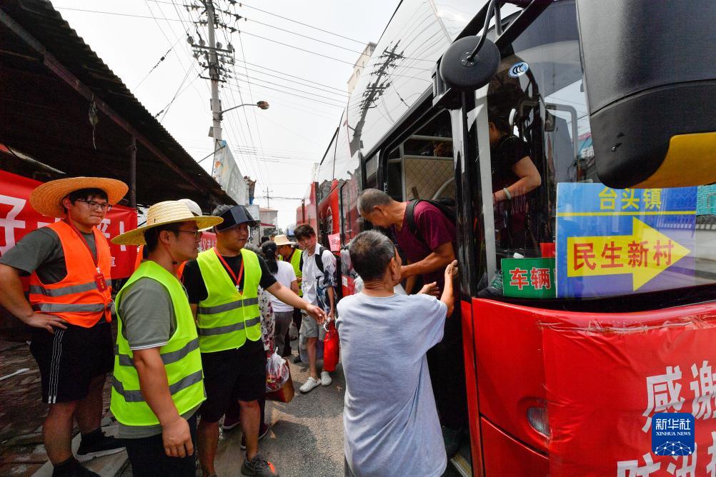 8月20日,在天津市靜海區&頭鎮,村民有序下車準備回家。