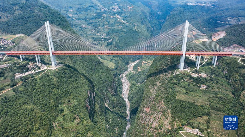 貴州、雲南交界處的杭瑞高速北盤江大橋(8月15日攝,無人機照片)。