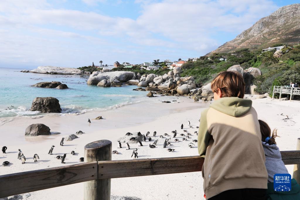 8月12日,游客在南非開普敦西蒙鎮觀看企鵝。
