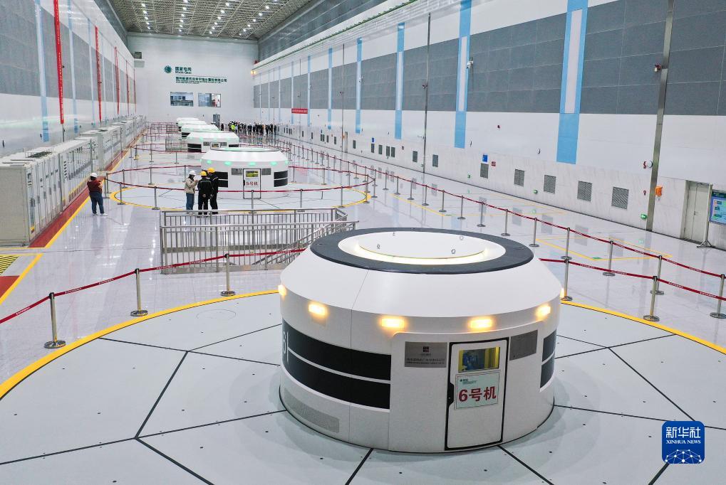 位於河北承德的國網新源豐寧抽水蓄能電站地下廠房內的可逆式水泵水輪發電機組單機容量30萬千瓦(8月19日攝,無人機照片)。12&機組全部安裝完成後將是我國自主設計建設、世界裝機容量最大的抽水蓄能電站。