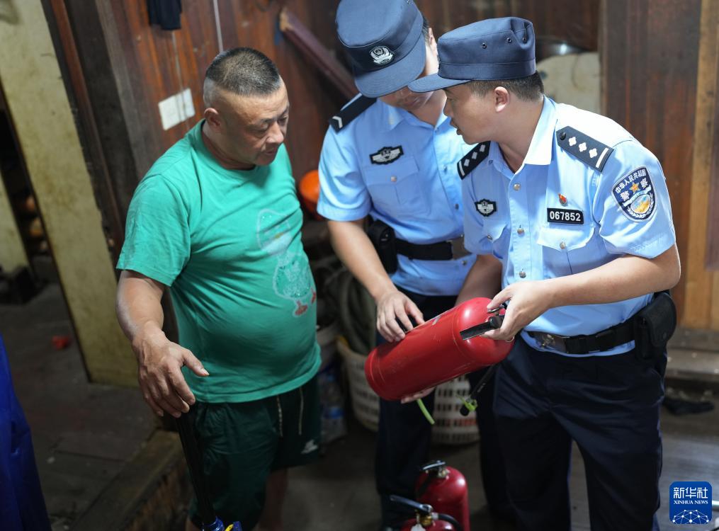 8月16日,舟山市公安局普陀區分局民警對泊岸漁船進行常態化安全隱患排查。新華社記者 翁忻旸 攝