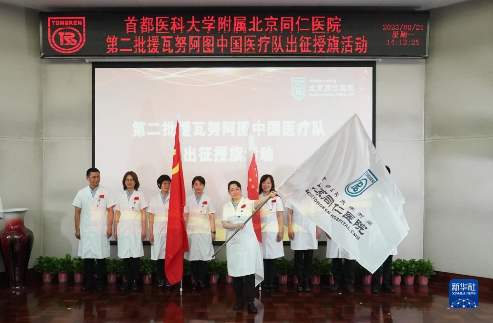 當日,由北京同仁醫院醫護人員組成的第2批援瓦努阿圖中國醫療隊出征授旗活動在北京同仁醫院舉行。本次援瓦努阿圖中國醫療隊共有來自北京同仁醫院普外科、泌尿外科等科室的9名醫護人員組成,援助時間為期1年。